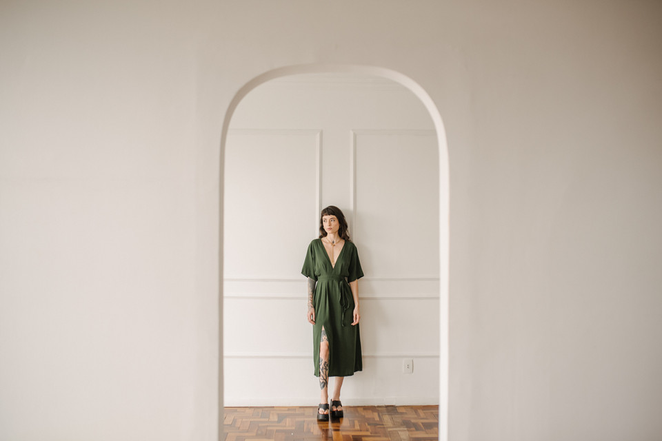 VESTIDO BYA BRASIL VERDE MUSGO MIDI